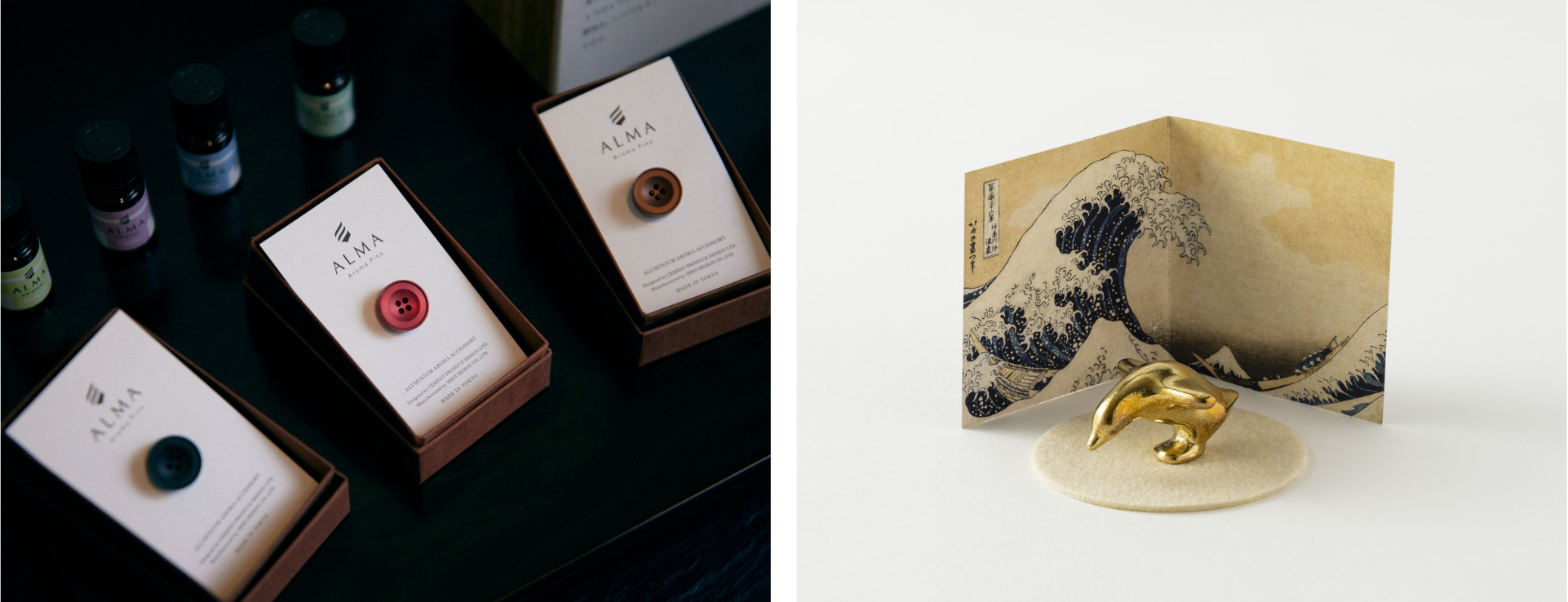 ピンズの中に好きな香りを染み込ませた綿球を入れることで、好きな香りを纏うことができます。